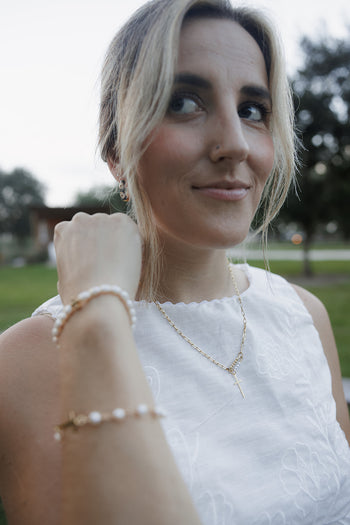• Gracebloom – Floral Beaded Pearl Cross Bracelet | Handmade Faith Jewelry Simply KorenaGracebloom – Floral Beaded Pearl Cross Bracelet | Handmade Faith Jewelry