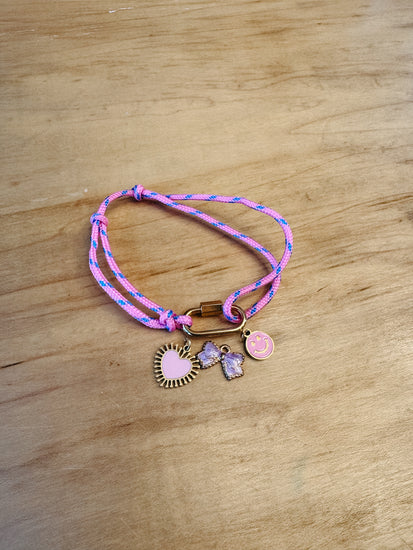 Playful yet polished, the 18K Gold PVD Stainless Steel Pink and Blue Rope Carabiner Bracelet is a standout piece designed for personalization. The soft rope adds a fun touch, while the gold-tone charm holder offers a luxe foundation for showcasing your favorite charms. Made with durable stainless steel and finished in 18K gold PVD, this bracelet combines quality, color, and creativity—perfect for stacking or styling solo.